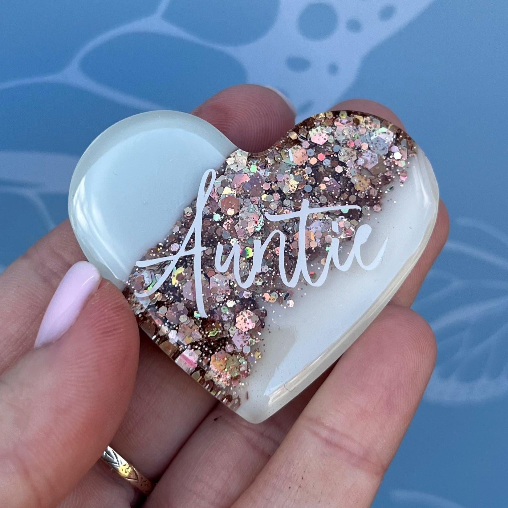 Auntie Resin Glitter Heart MAGNET | Fridge Magnet | Auntie Gift | Personalised Gift | Gifts for Auntie | Thank you Gift | Birthday Gift