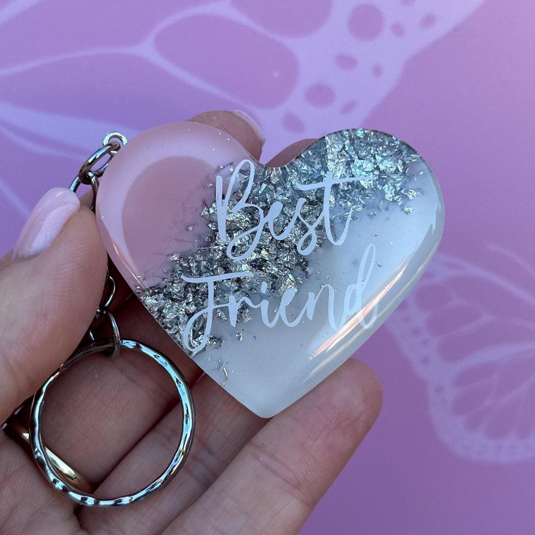 Make your Best Friend's day with this exquisite resin heart keyring from Lacey Jay Designs. Order now and give a gift that is as unique and special as she is.
