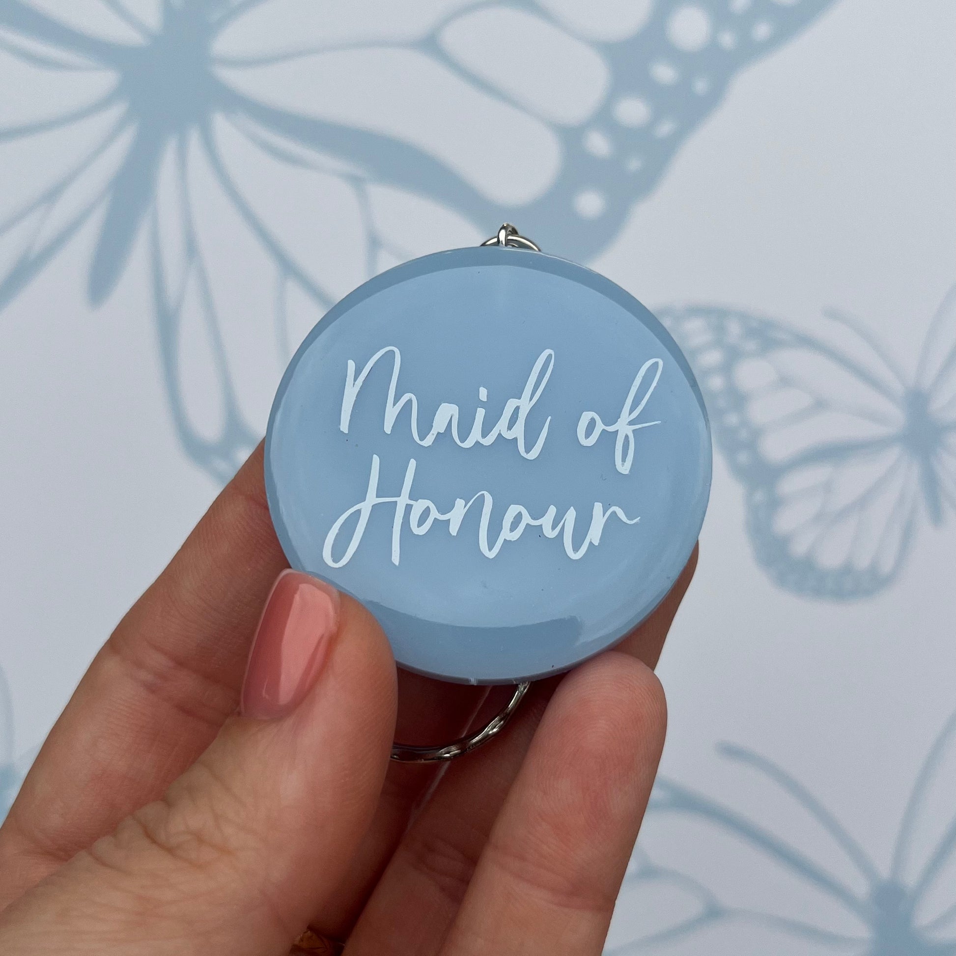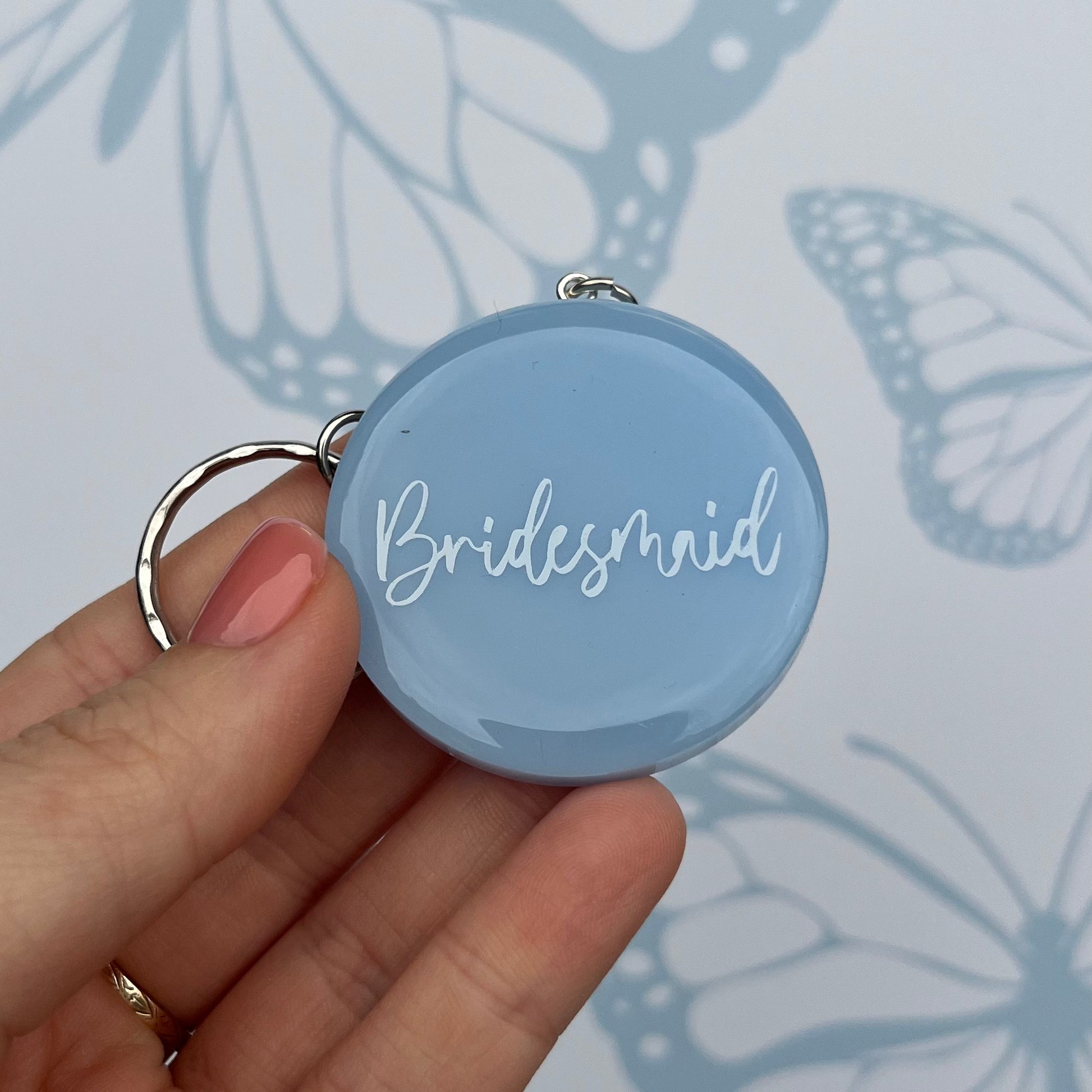 Bridal Blue Circle Keyring | Choose your own text or Wedding options | Gift for Bride, Maid of Honour, Bridesmaid & more | Bridal Favours