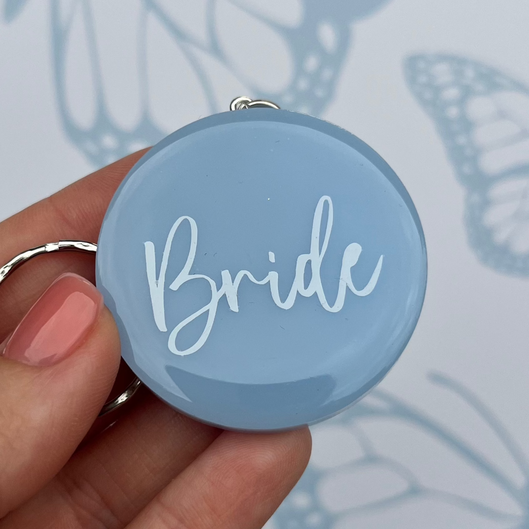 Bridal Blue Circle Keyring | Choose your own text or Wedding options | Gift for Bride, Maid of Honour, Bridesmaid & more