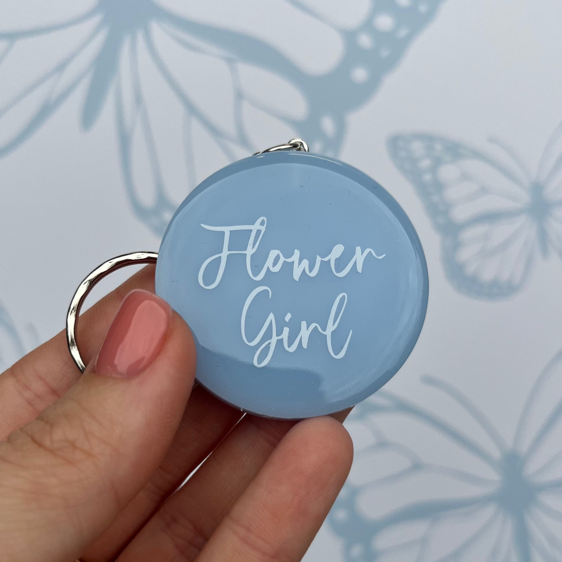 - Personalised Options: Choose from a variety of texts to make each keyring uniquely yours. Options include: Bride, Bridesmaid, Maid of Honour, Groom, Flower Girl or choose your own text!