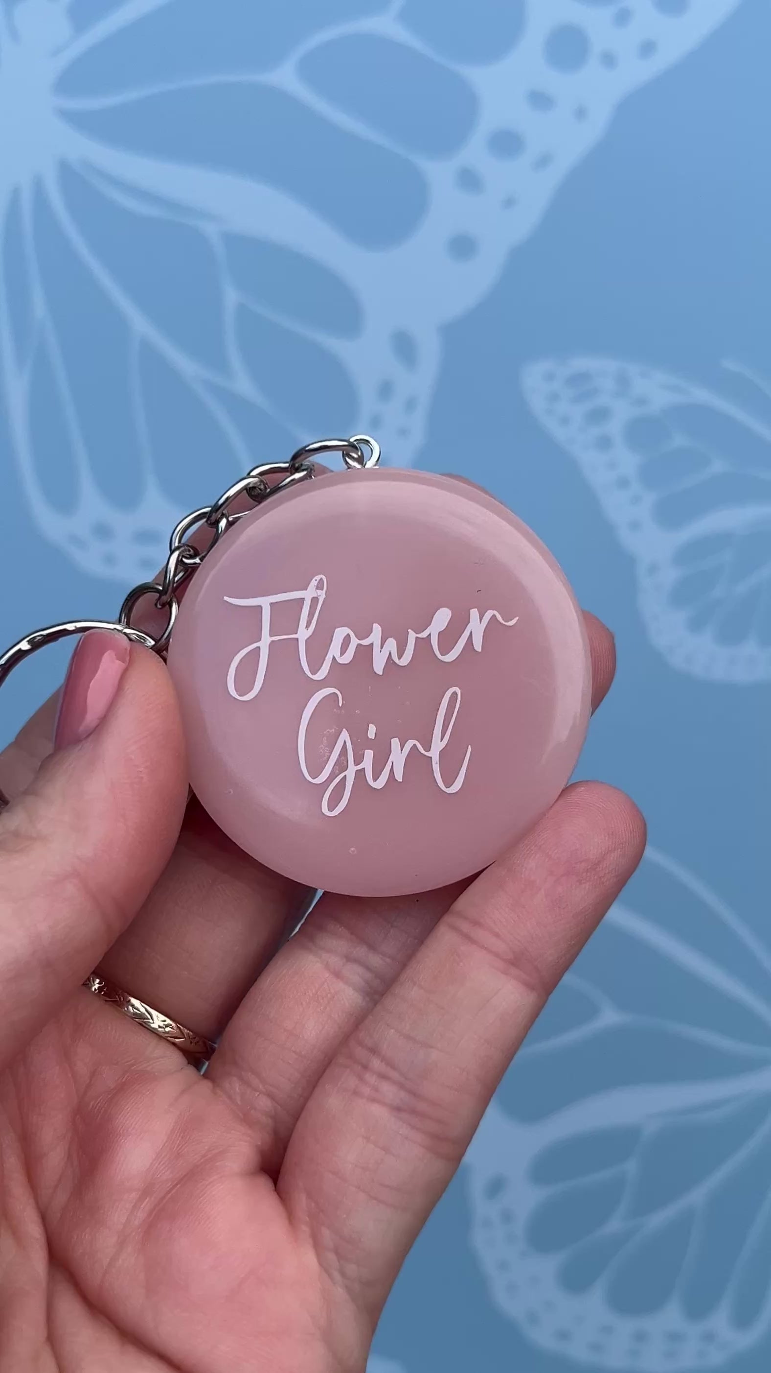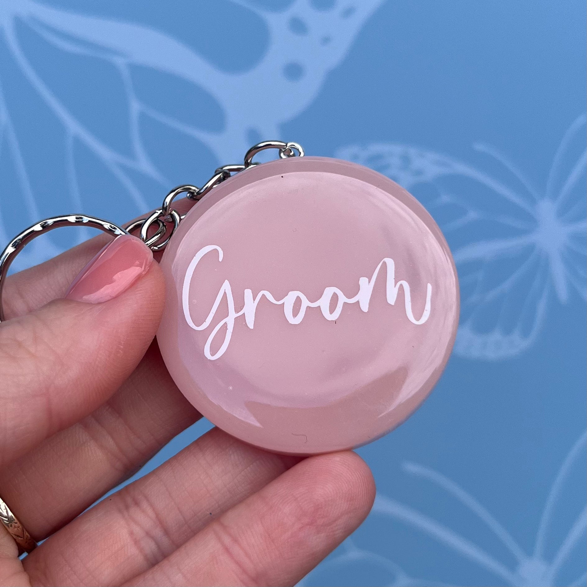 - Personalised Options: Choose from a variety of texts to make each keyring uniquely yours. Options include: Bride, Bridesmaid, Maid of Honour, Groom, Flower Girl or choose your own text!