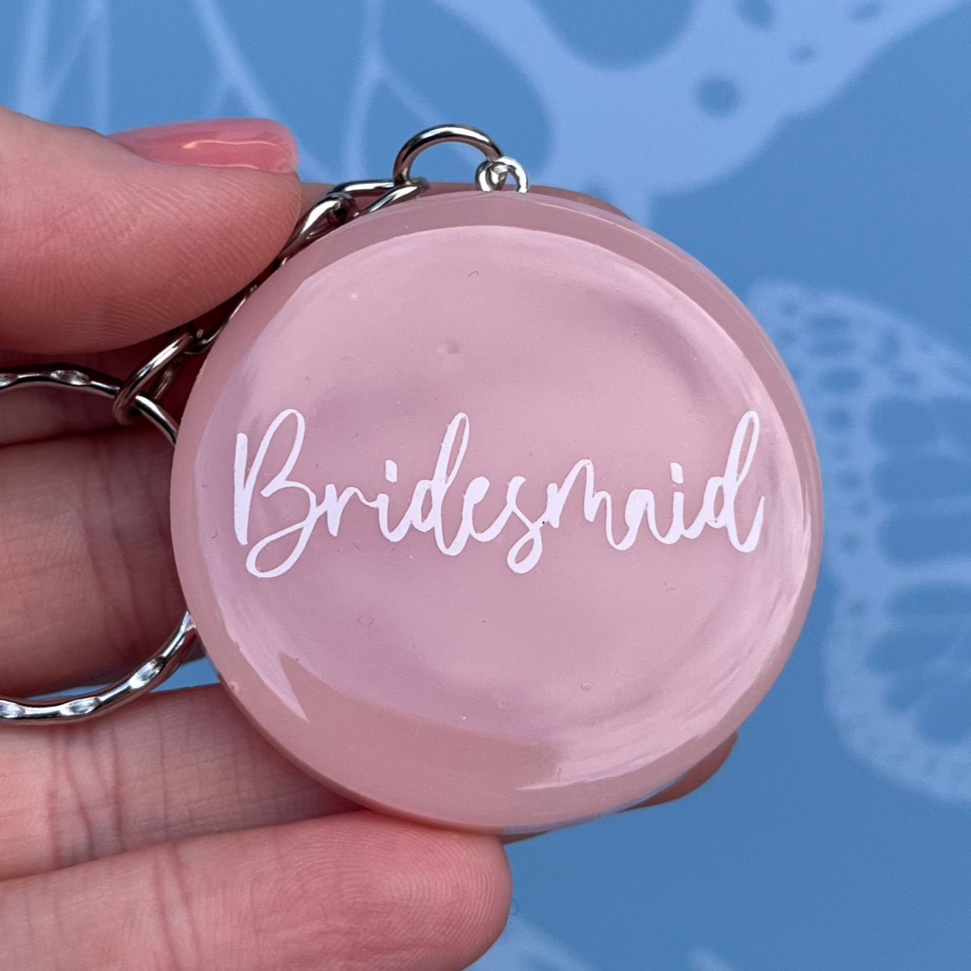 Bridal Pink Circle Keyring | Choose your own text or Wedding options | Gift for Bride, Maid of Honour, Bridesmaid & more