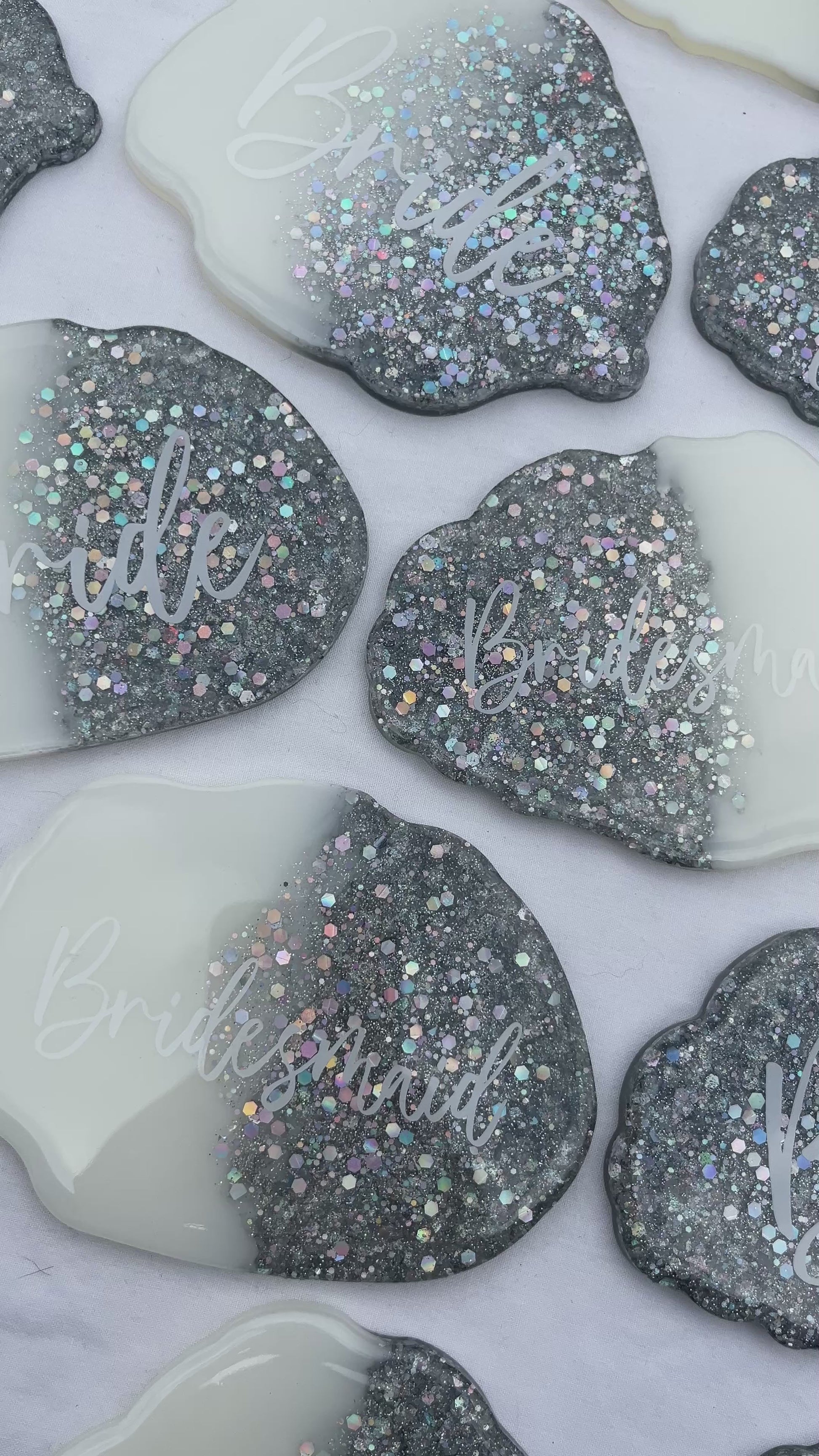 Personalised Options: Choose from a variety of texts to make each coaster uniquely yours. Options include: Bride, Bridesmaid, Maid of Honour, Groom, Flower Girl or choose your own text!