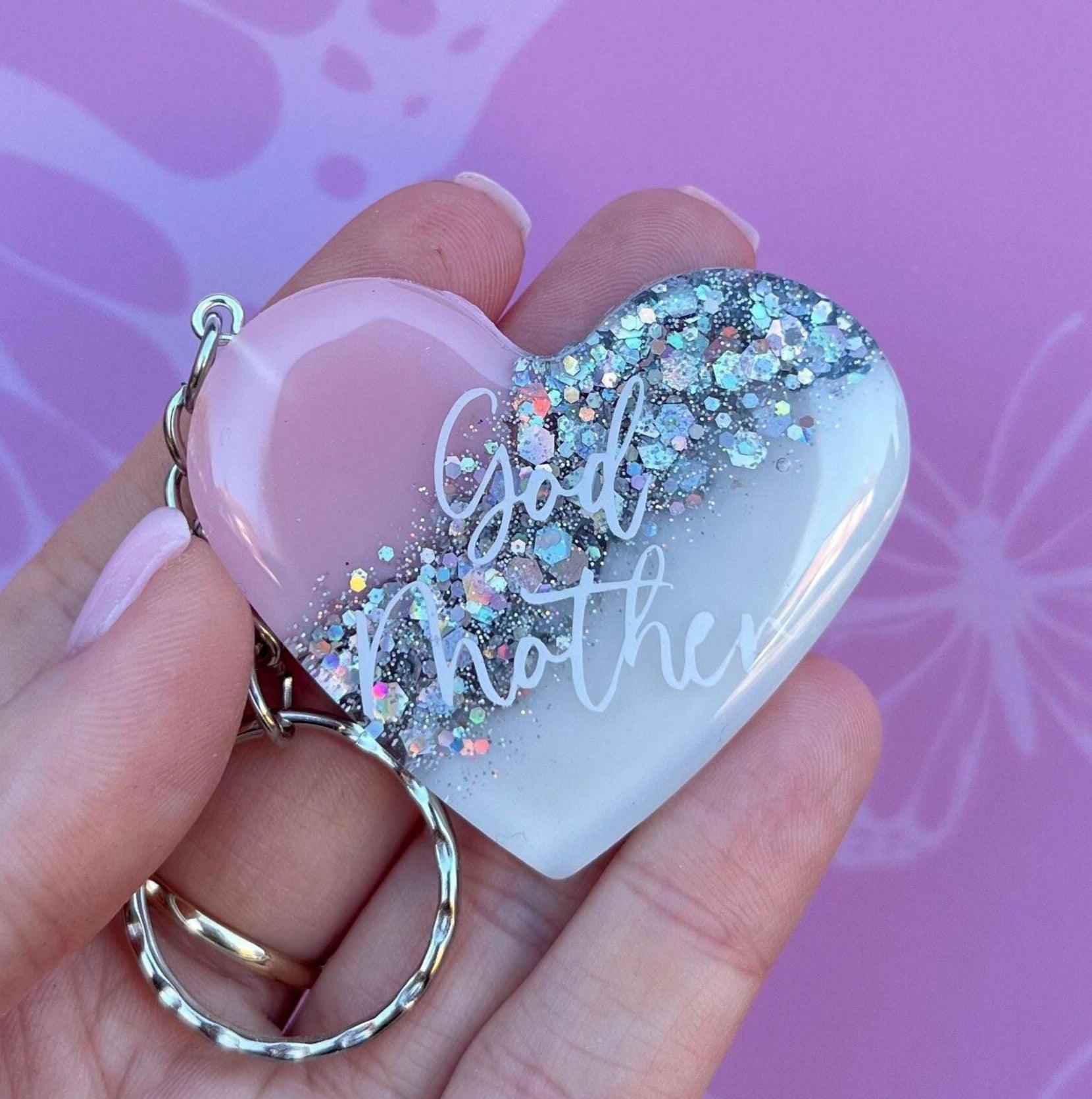 God Mother Resin Glitter Heart KEYRING, God Mother Gift, God Mum keyring, Birthday Gift, Christmas Gift, Keyring For Women, Custom Keychain
