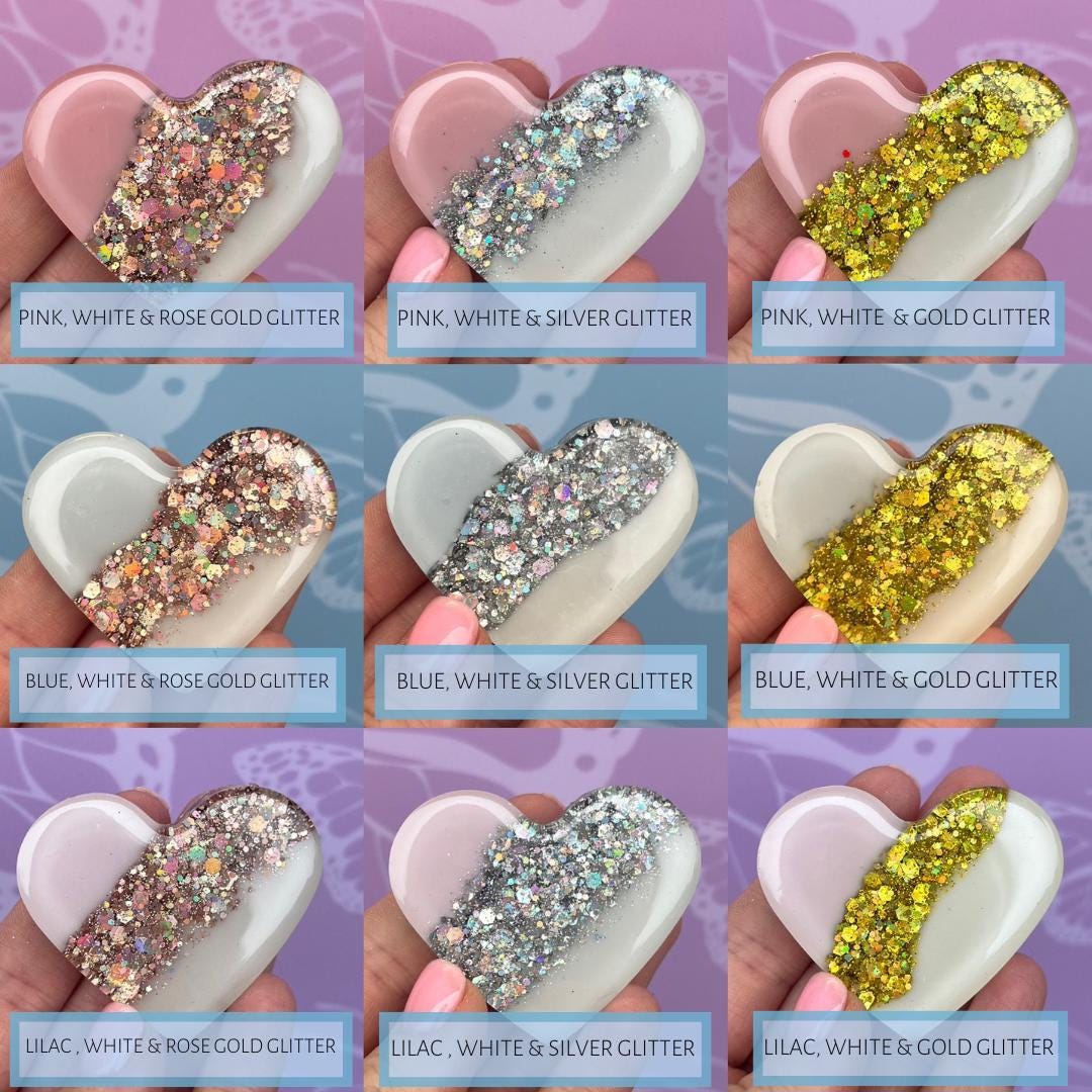 Charming Design: Features a lovely heart shape with a delicate blend of your chosen colour and white hues, accented with choice of glitter. The word 'Mummy' is inscribed in elegant script.