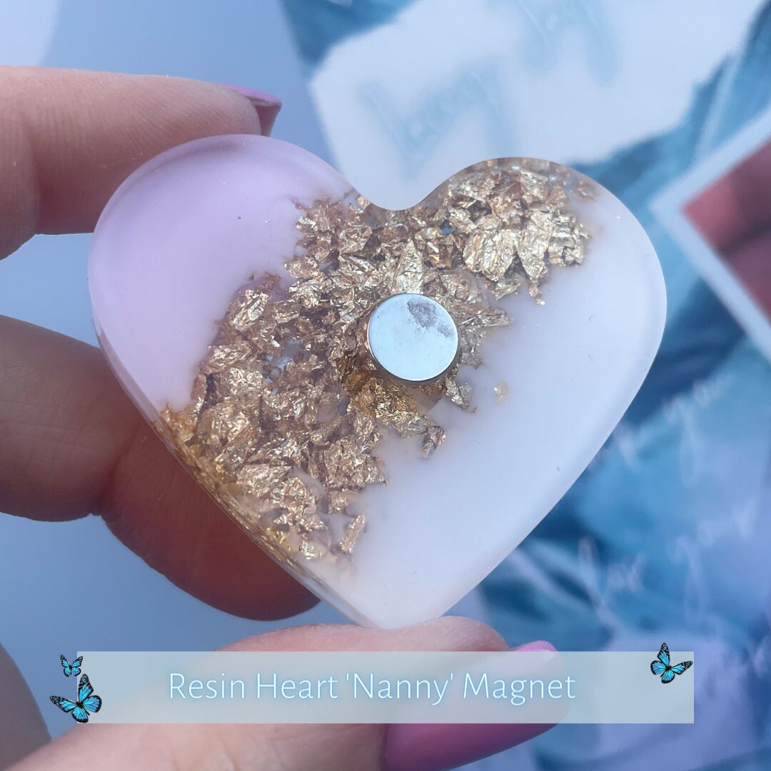 Brighten up your fridge and bring a touch of elegance to your home with our Handmade Resin Heart Magnet featuring the word 'Nan'. This beautifully crafted magnet is a perfect gift for your beloved nan, combining functionality with a charming aesthetic.