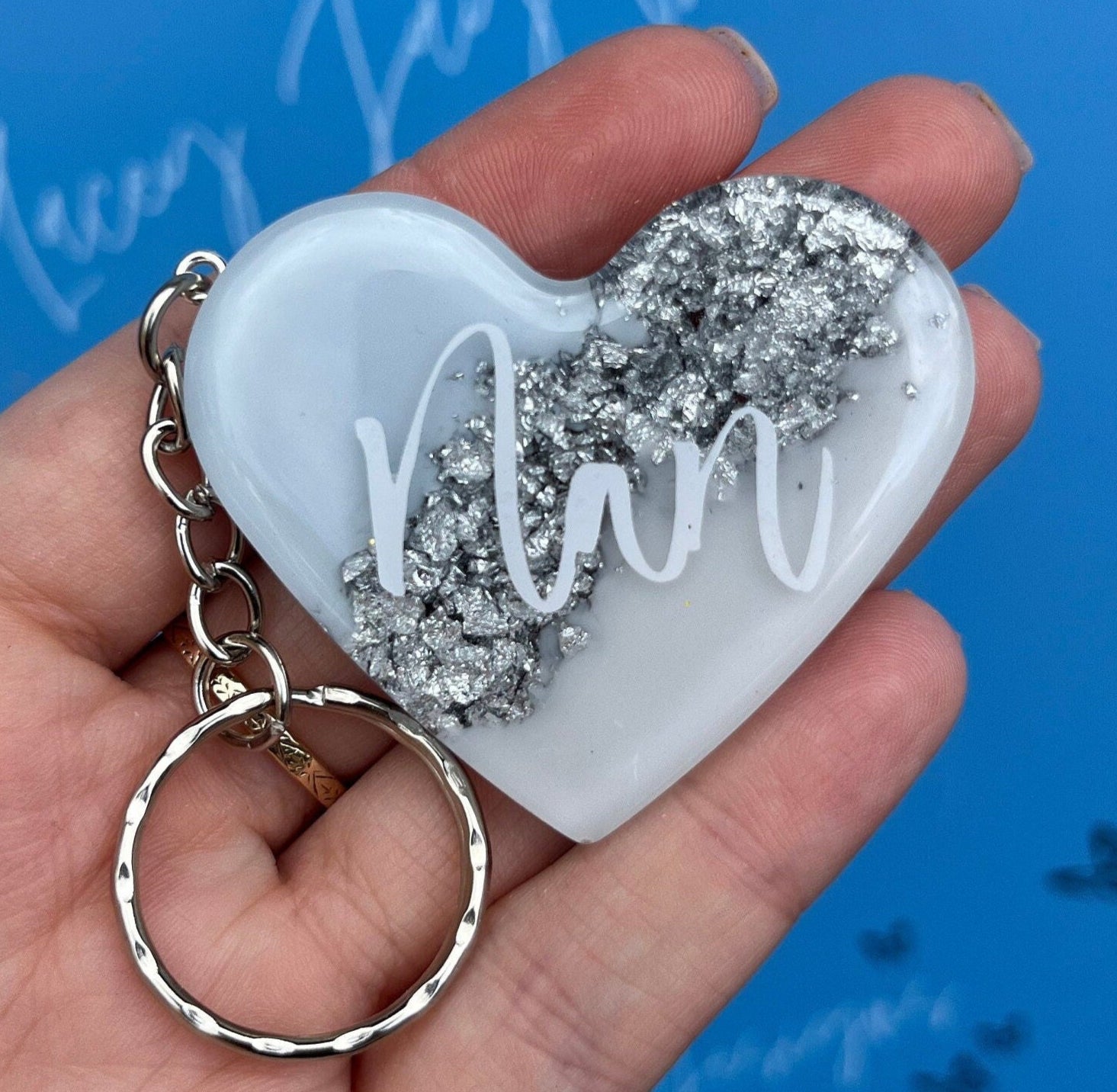 Make your nan's day with this exquisite resin heart keyring from Lacey Jay Designs. Order now and give a gift that is as unique and special as she is.