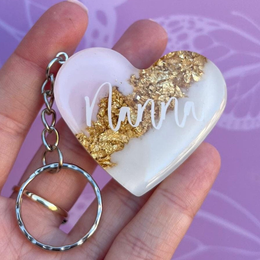 Make your nanna's day with this exquisite resin heart keyring from Lacey Jay Designs. Order now and give a gift that is as unique and special as she is.