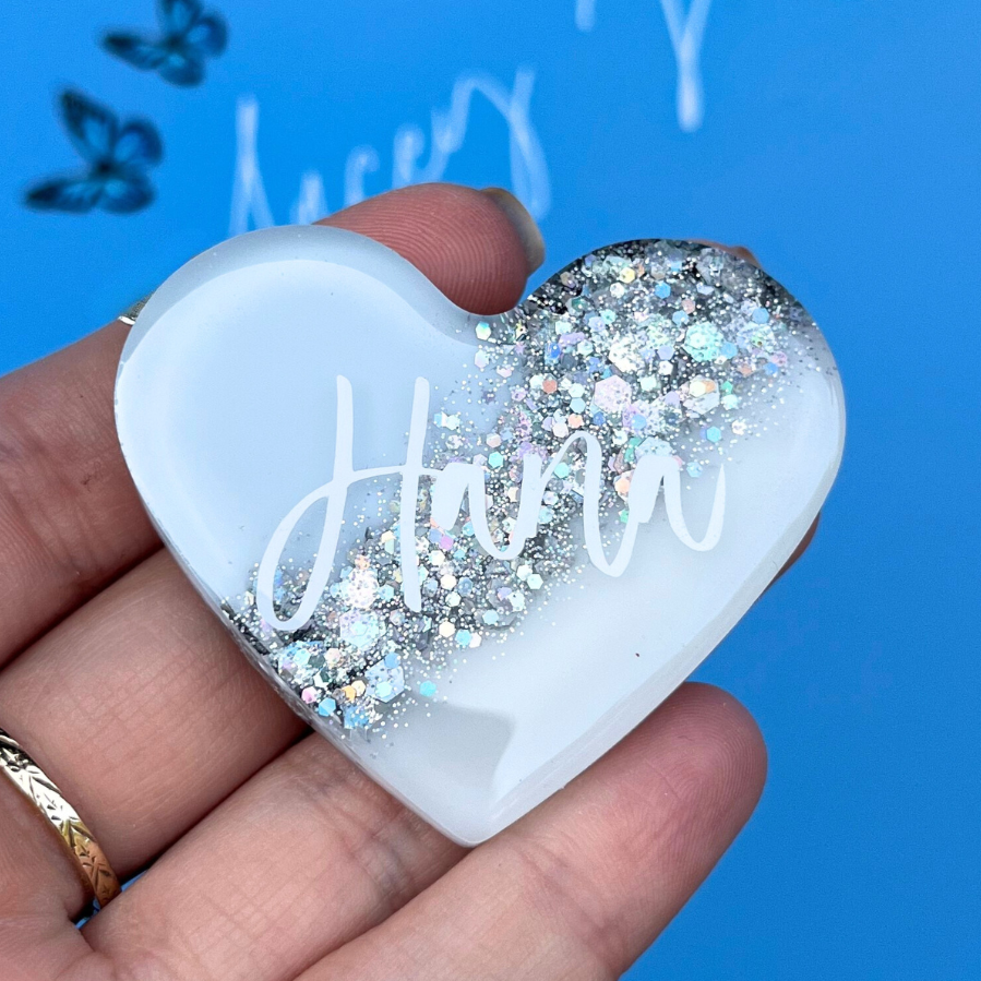 Resin Heart 'Name' Glitter MAGNET | Fridge Magnet | Choose any name Gift | Personalised Gift | Birthday Gift | Thank you Gift