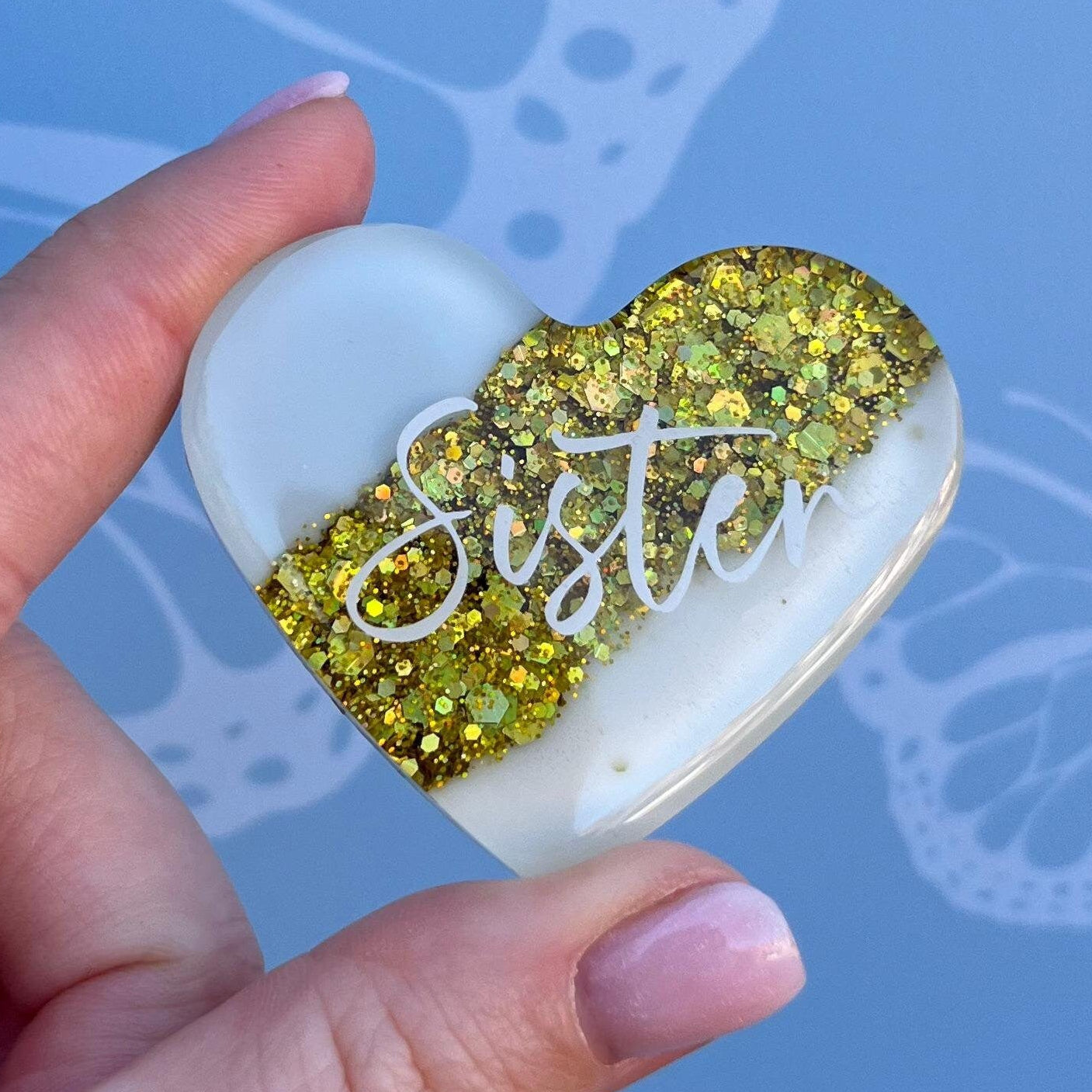 Sister Resin Glitter Heart MAGNET | Fridge Magnet | Sister Gift | Personalised Gift | Gifts for Sister | Thank you Gift | Birthday Gift