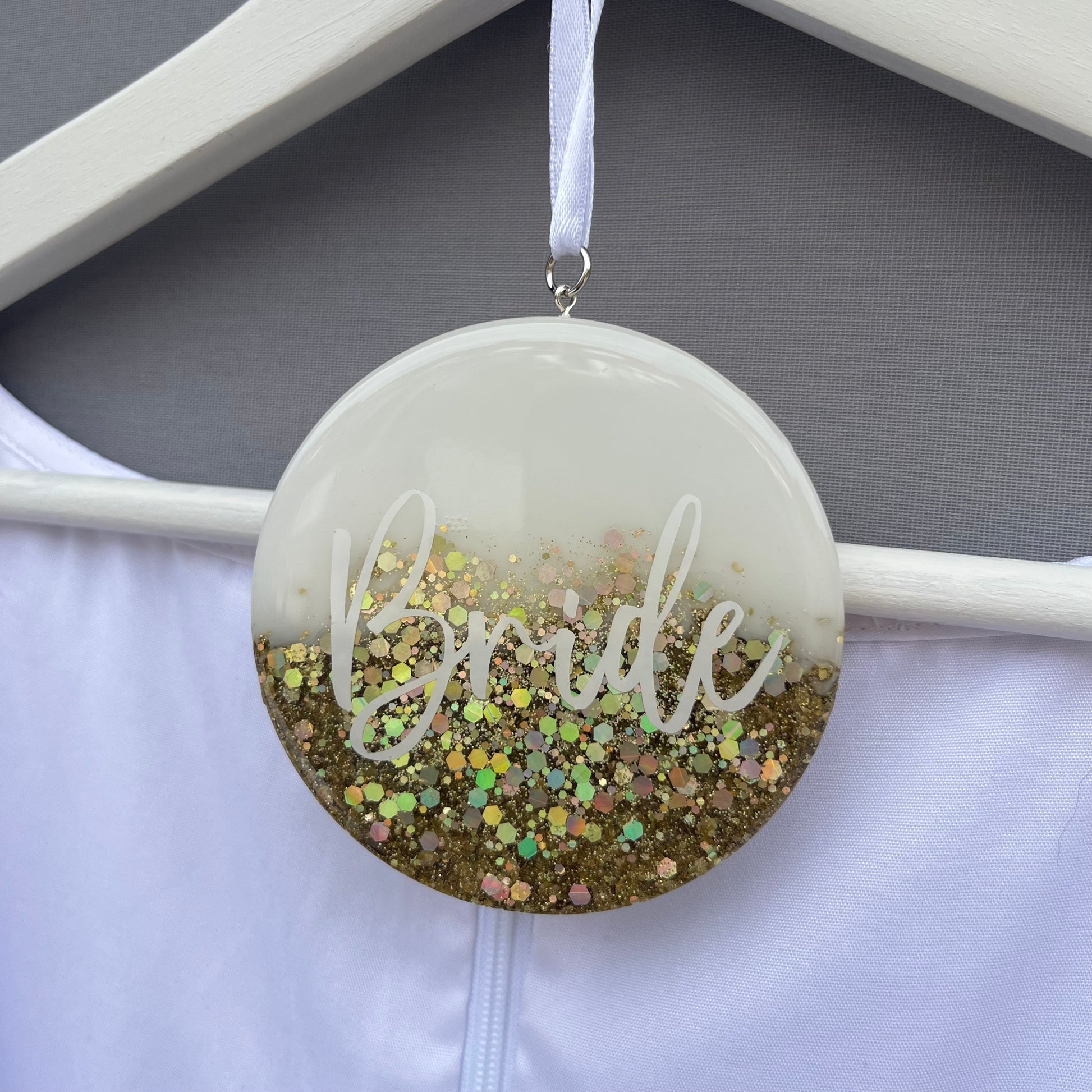 Add a touch of elegance to your wedding with our stunning White & Gold Resin hanging circle with adjustable white ribbon. Perfect as name hangers, place settings, wall decor or thoughtful gifts, these coasters combine beauty and functionality, making them a must-have for your special day.